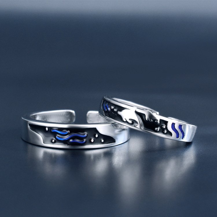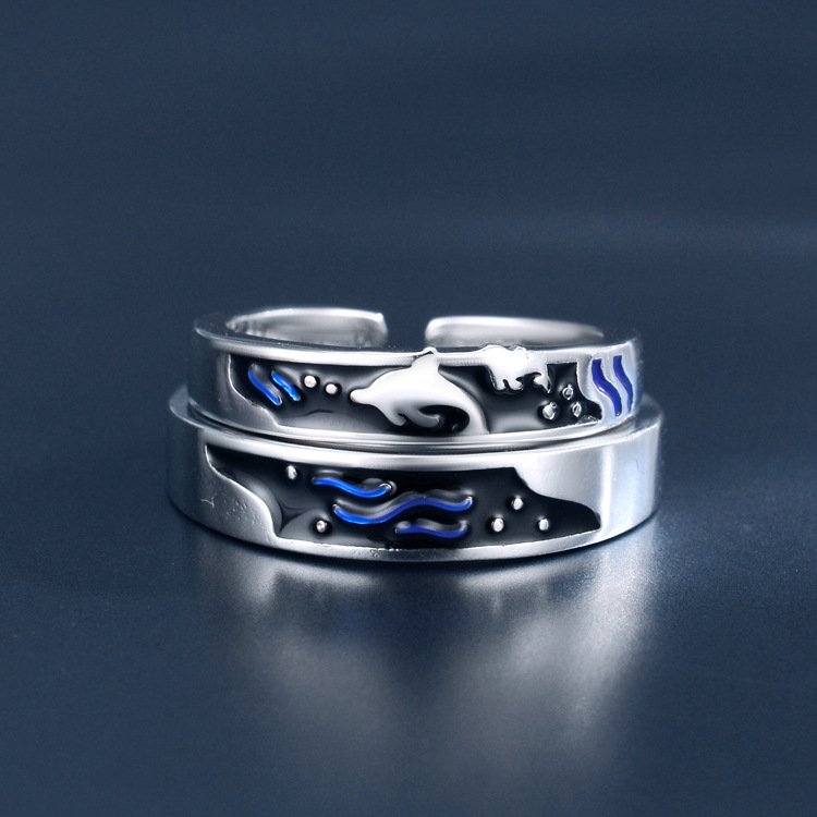 Sea And Whale Epoxy Couple Men And Women Pair Rings Simple Rings
